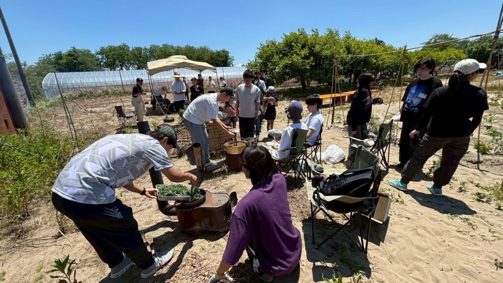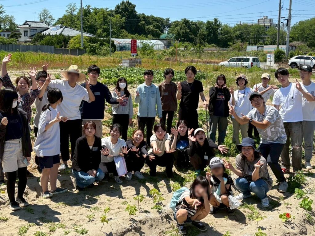 ゼミ生と近隣のフリースクールの子どもたち。毎回の食農福プログラムは、みんなで働きみんなで調理し、みんなで美味しく食べることがすべて。