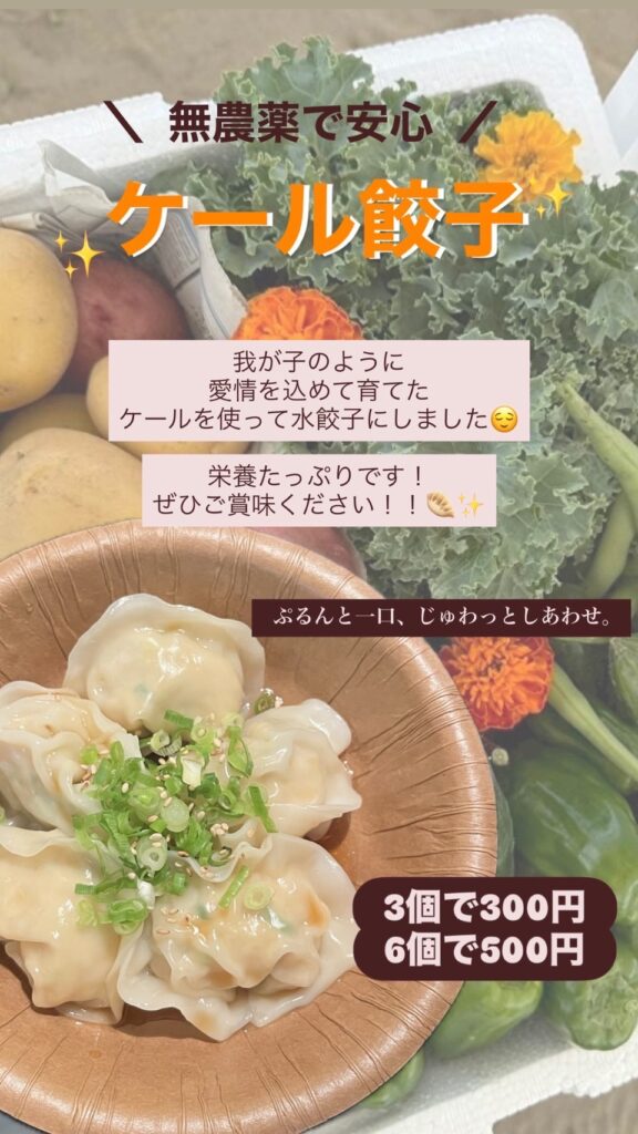 新潟市北区の地元住民に愛されている夜市に自慢の自作ケールを使った水餃子を初出店!近隣の障害者支援施設のキッチンをお借りし、利用者や職員と協働して忙しいながらも充実した体験をさせていただきました。