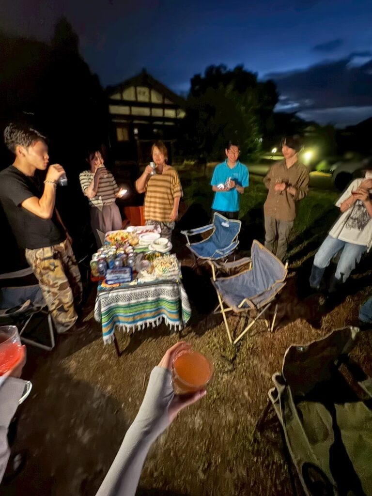 3年ゼミの親睦を深めるゼミ恒例イベント(2025.7.17)。畑で育てている野菜やハーブをふんだんに取り入れてお洒落に宴会するのが原口ゼミ流! 北区の福島潟に隣接する菱風荘にて。